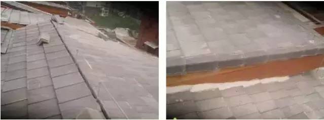 排风道、屋面检查孔等处屋面平瓦与立面结构相交部位,除使用与屋面配套的柔性卷材泛水处理外,必须全部使用防水砂浆将瓦与结构(木条)之间的缝隙填满灌实。