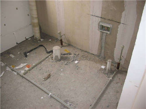 将厕所的墙面和地面进行找平后,要对其进行仔细的清理,避免遗留下其他装修杂质,从而影响卫生间防水层的效果,降低其防水作用。同时,检查其下水管道、排水管道内是否存有杂物,若有也一并清理干净,否则很容易造成厕所堵塞的问题。